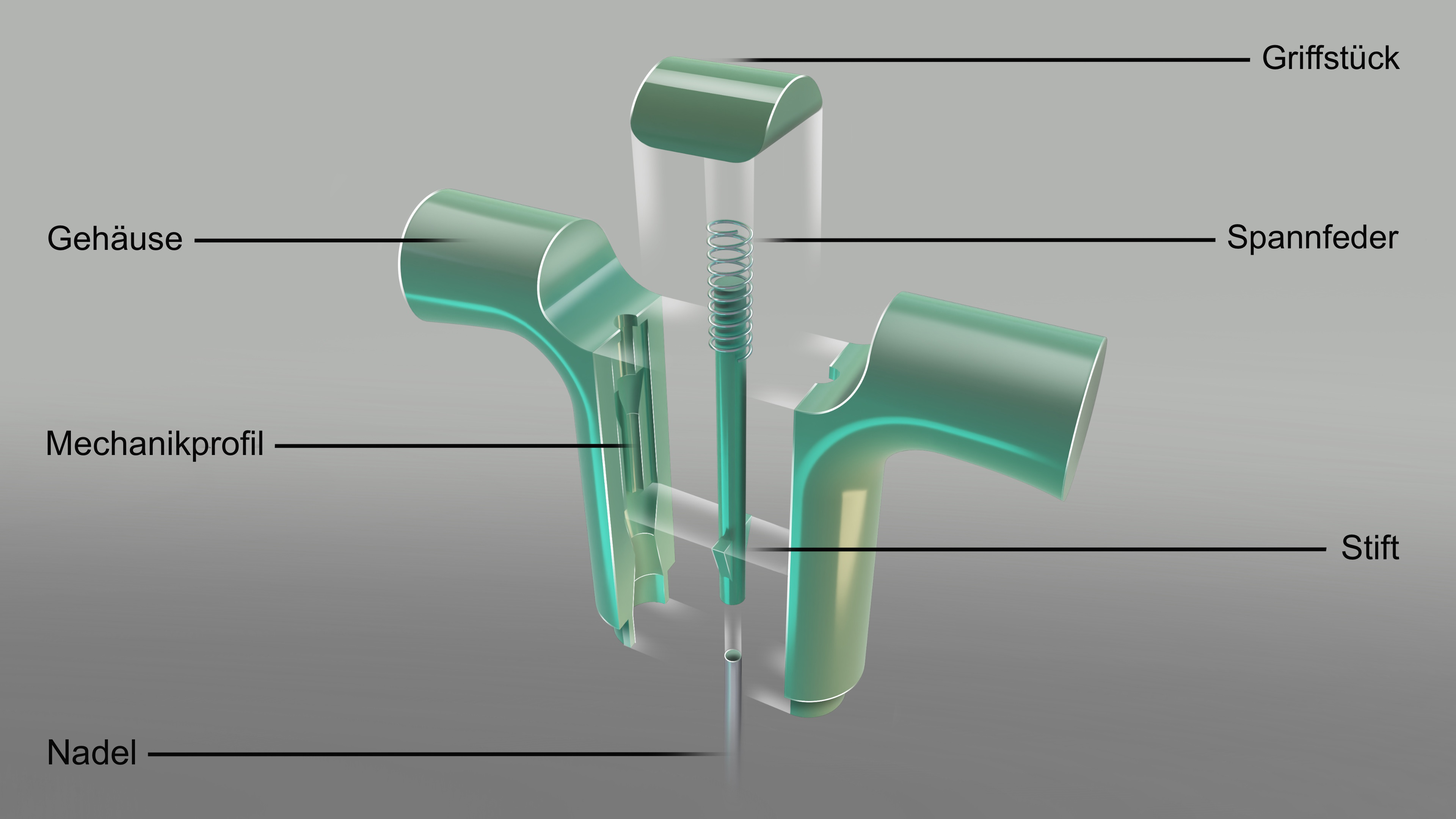 Das Designkonzept der Biopsienadel ist gekennzeichnet durch die folgenden Merkmale: