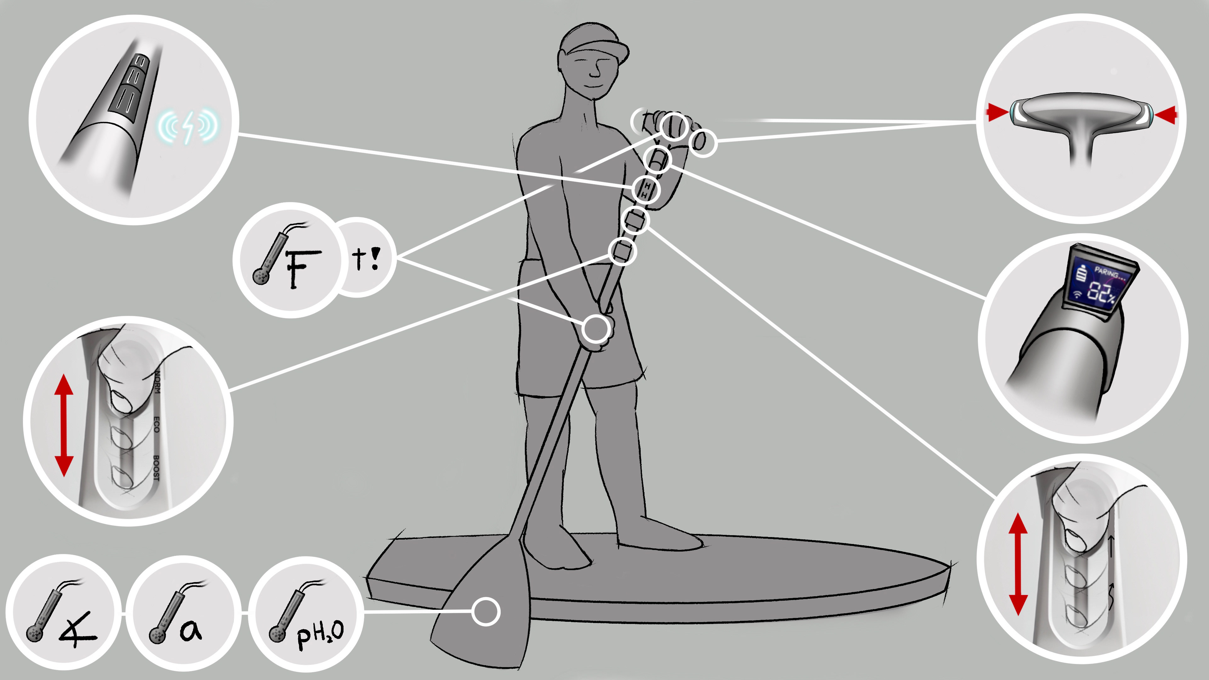 Ziel war die Entwicklung eines Konzepts für ein vernetztes Paddel zur Steuerung eines motorisierten Jetboards. Die Beschleunigung und die Stärke der Lenkunterstützung werden dabei über integrierte Eingabemodule reguliert. Die Reservierung der Geräte erfolgt per Smartphone-App an Mietstationen, ähnlich dem Sharing-Prinzip von E-Scootern im urbanen Raum.